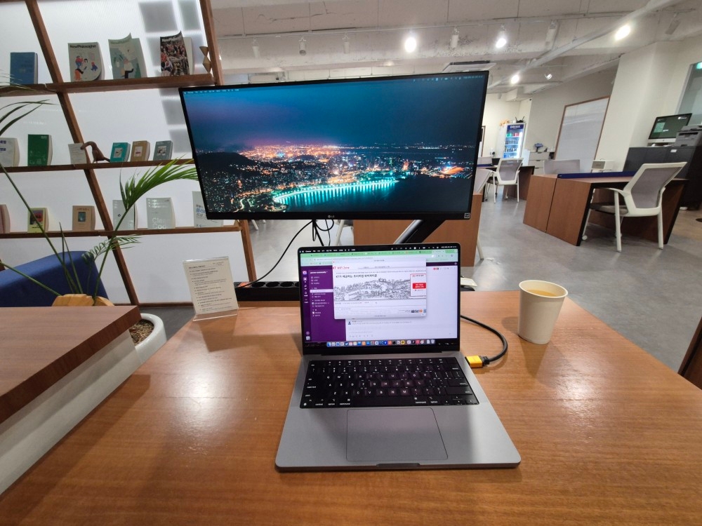 오후 8시쯤 도착했는데 사람이 텅 비어있었고, 작업에 전념하기는 아주 좋은 공간이었습니다. 특히나 와이드 모니터 자리가 있어서 맥을 연결해 PPT 작업을 하기 수월했었네요. :thumbsup: 그나저나 다음에도 와봐야겠다는 생각을 했는데 이름을 모르고 있었네요...ㅋㅋㅋ 그래도 위치는 아니까!