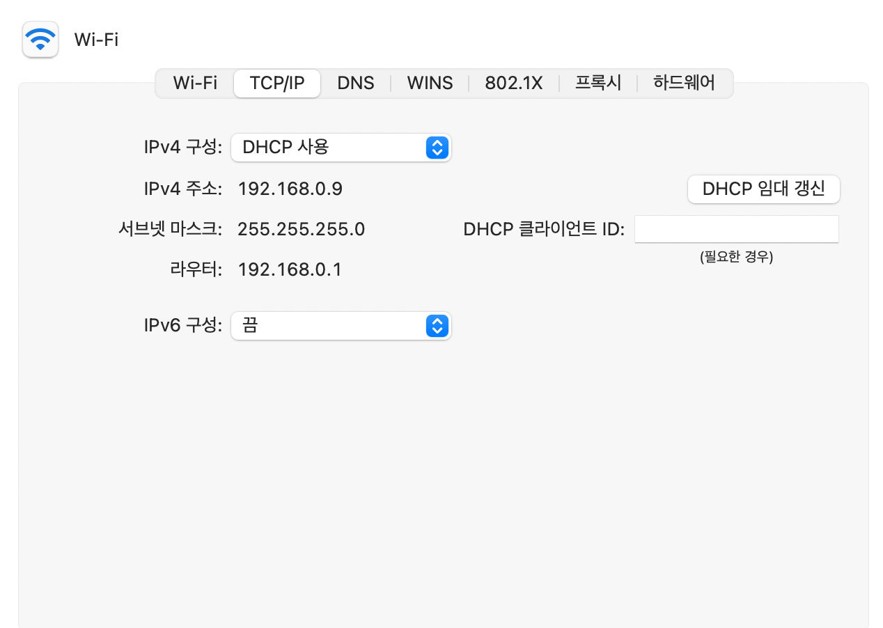 회사와 집이 아닌 카페, 도서관 등 다른 네트워크를 사용하는 경우에는 TCP/IP 설정을 다시 DHCP로 변경해주어야 하는점.. 카페가서 왜 나만 인터넷 안되나 했던 경험이 있네요. 꼭 수동으로 체크되어 있는지 확인해야 합니다.