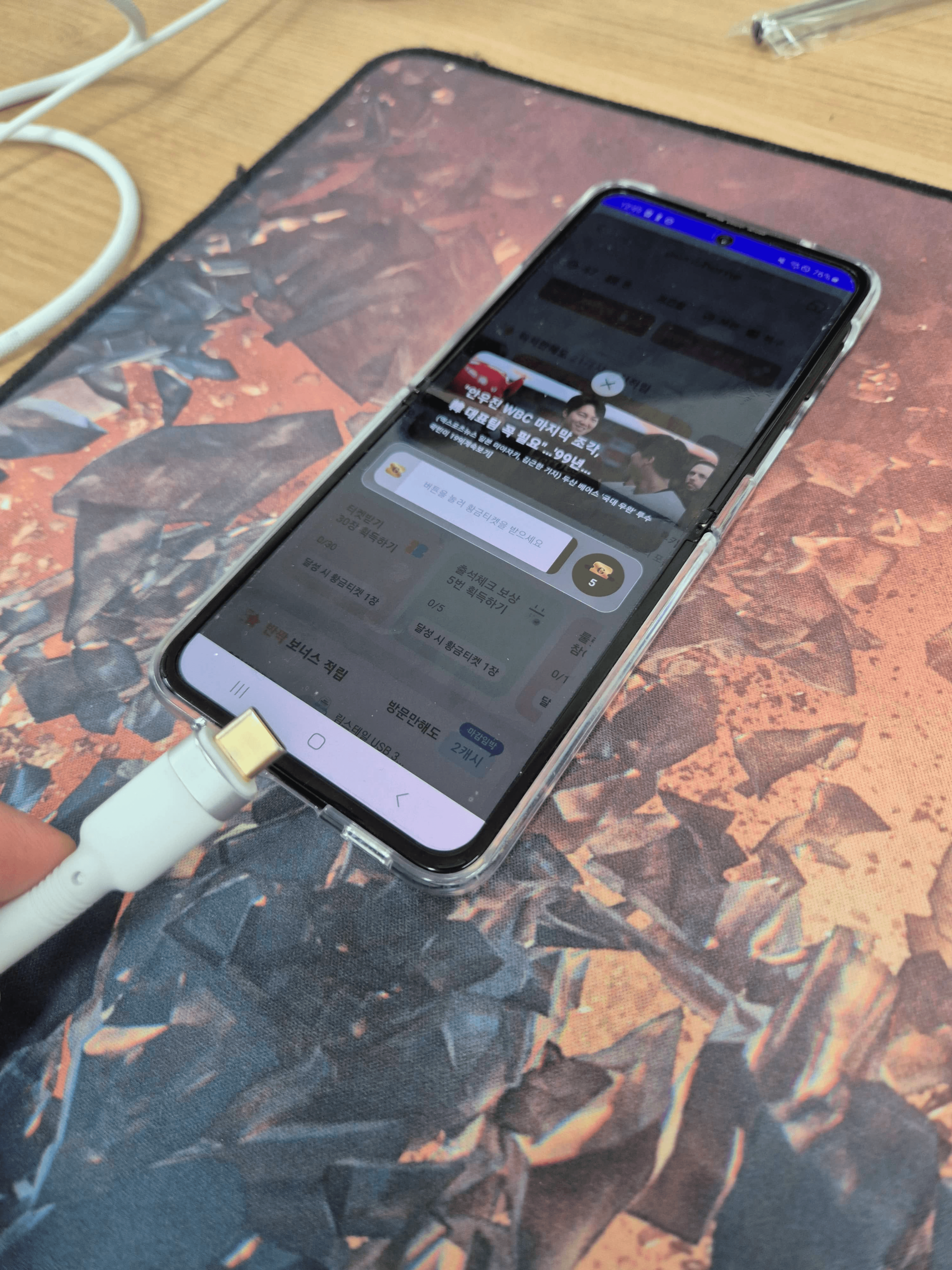 이 방법은 급할 때 주로 이용하는데요, 빠르게 콘솔 로그나 네트워크를 확인할 때 종종 사용합니다. 특히 디버깅 허용 시간을 30초 가량밖에 안 주기 때문에 타임어택을 해야하는 스릴이 있기도 하지요. 손이 빠르다면 매번 뺐다 꼽았다 하는 방법도 낫뱃..?